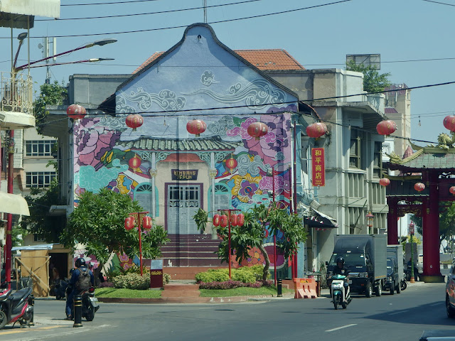 Lukisan di tembok / Mural. Mengingatkan saya dengagn bangunan lawas di Melaka yang juga dilukis warna-warni. |